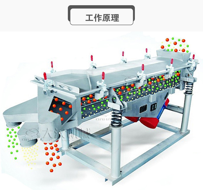 多層直線振動(dòng)篩的驅(qū)動(dòng)力是雙振動(dòng)電機(jī),依靠振動(dòng)電機(jī)產(chǎn)生的激振來(lái)開(kāi)展作業(yè),篩機(jī)的運(yùn)動(dòng)軌跡是一條直線,在振動(dòng)力和物料的雙重作用下,將篩面上的物料拋起向前做跳躍式直線運(yùn)動(dòng),從而正確契合網(wǎng)篩進(jìn)行多層篩分。