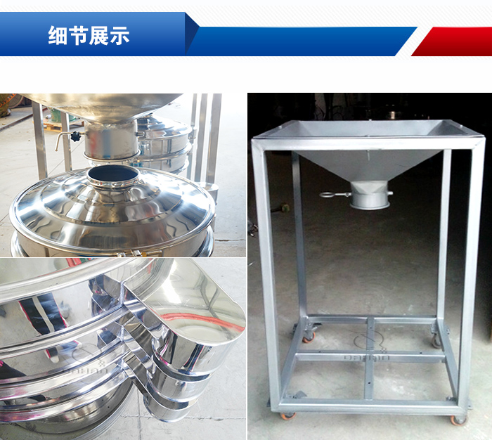 2、間歇性加料,不用工人不間斷投料節(jié)省人工,蝶閥控制流量大小,能提高篩分精度。