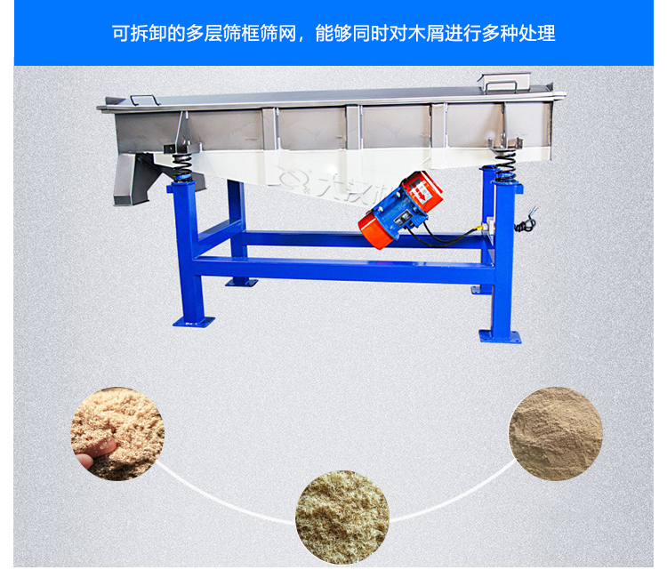 1、可拆卸的多層篩框篩網(wǎng),能夠同時對木屑進行多種處理,可能夠根據(jù)使用情況的不同靈活調(diào)整篩框篩網(wǎng)層數(shù);