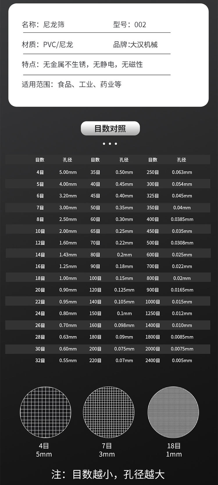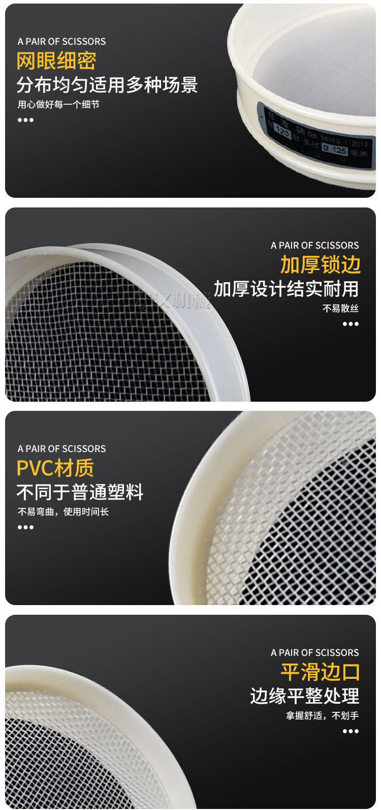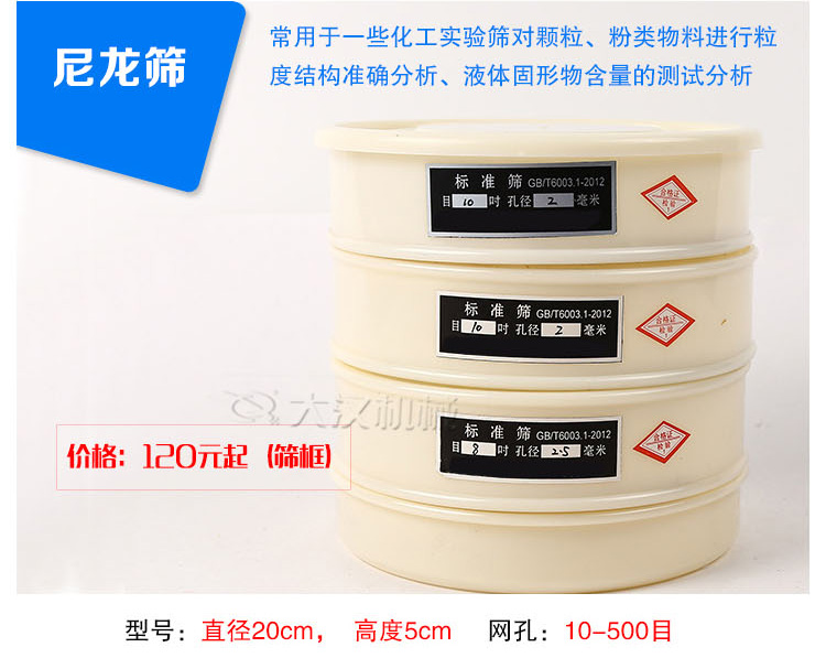 尼龍篩使用優(yōu)質(zhì)PVC塑料框,底網(wǎng)為國家標(biāo)準(zhǔn)尼龍網(wǎng),均無金屬成分,廣泛應(yīng)用于化工,實驗室等部門,可代替土壤篩使用。