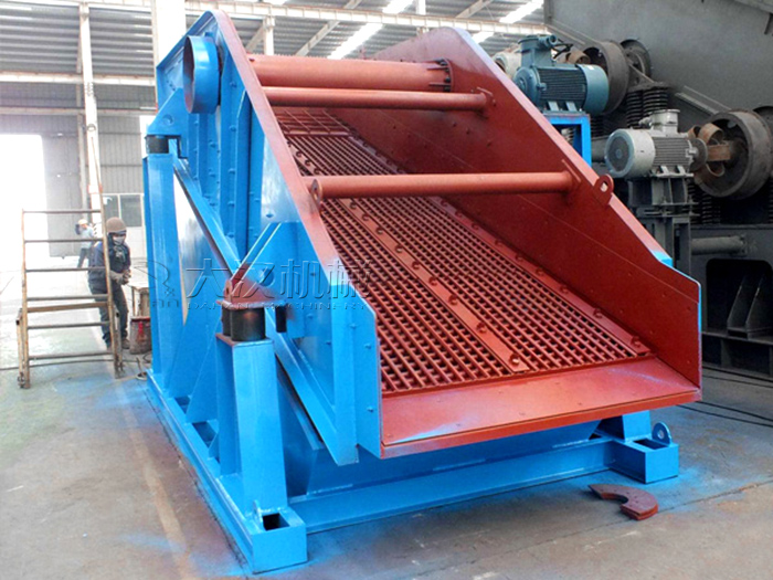 尾礦干排篩由篩箱、支承裝置、電機(jī)架、振動(dòng)器、萬向傳動(dòng)軸、膠帶聯(lián)軸器、電機(jī)等部件組成,入料尾礦由給料箱均勻給入篩子入料口處,首先在與水平成45度安裝泄水篩板處脫除約1/3左右的水分,進(jìn)入平面篩板與傾斜篩板的結(jié)合部后,出現(xiàn)物料的積聚,煤泥顆??恐亓Τ两担_始形成較薄的濾層,濾層又阻止其余顆粒透篩,使得濾層逐漸增厚。未能透篩的水在濾層上部形成水池,由于此處濾層較薄,水分陸續(xù)在強(qiáng)烈的運(yùn)動(dòng)下逐漸脫去,由于高頻低振幅的振動(dòng)狀態(tài),使得形成濾層的尾礦振的越來越密實(shí),至排料口處,物料形成濾餅狀,尾礦中的水分除從篩面脫除一部分外,其余由于毛細(xì)作用浮現(xiàn)于料層表面,由于篩面負(fù)傾角安裝,水不會(huì)從排料口溢出,表面水會(huì)流向結(jié)合部水池。