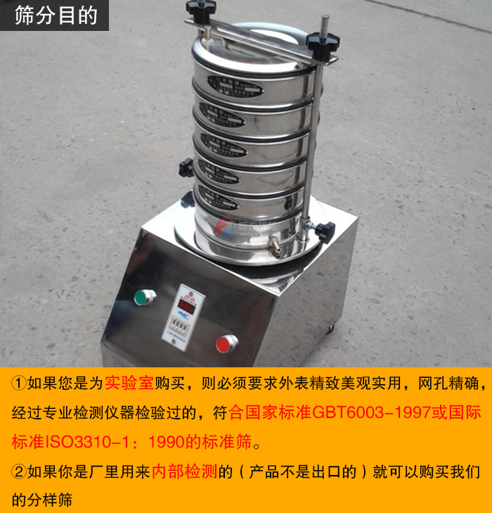 如果你是廠里用來(lái)內(nèi)部檢測(cè)的(產(chǎn)品不是出口的)就可以購(gòu)買(mǎi)我們的分樣篩。標(biāo)準(zhǔn)篩和分樣篩的主要區(qū)別就在于網(wǎng)孔是不是符合國(guó)家標(biāo)準(zhǔn)。