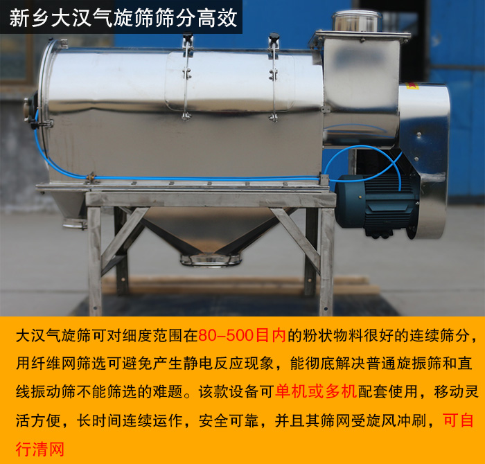 哪里購(gòu)買優(yōu)質(zhì)氣旋篩?歡迎前來新鄉(xiāng)大漢進(jìn)行選購(gòu),大漢氣旋篩型號(hào)齊全、性價(jià)比高,可按需定制,如需了解氣旋篩價(jià)格,型號(hào)等詳細(xì)信息,請(qǐng)隨時(shí)進(jìn)行免費(fèi)咨詢或來廠免費(fèi)試機(jī)。