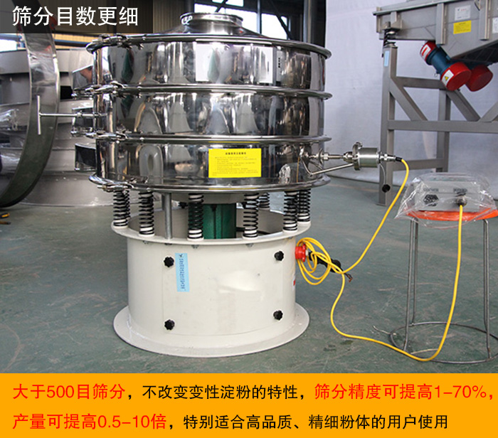超聲波振動篩是旋振篩的改良設(shè)備,是為了解決高精細粉末堵網(wǎng)問題而設(shè)計的,具備自潔功能,無需增加其他篩網(wǎng)清理裝置,可保證變性淀粉在篩分過程中不會出現(xiàn)篩孔堵塞的現(xiàn)象,尤其對難篩分的物料效果顯著。