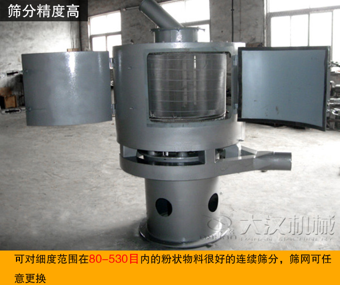 氣流篩是一種對微細粉進行有網(wǎng)篩分的高精度篩分設(shè)備,可對細度范圍在80-530目內(nèi)的粉狀物料很好的連續(xù)篩分,篩網(wǎng)可任意更換。