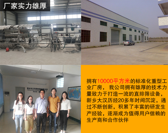 新鄉(xiāng)大漢機械是一家集科研、生產(chǎn)、銷售為一體的大型企業(yè),擁有10000平方米的標準化重型工業(yè)廠房, 我公司擁有雄厚的技術(shù)力量致力于打造的直排篩設(shè)備,新鄉(xiāng)大漢歷經(jīng)20多年時間沉淀,通過不斷,積累了豐富的研發(fā)生產(chǎn)經(jīng)驗,逐漸成為值得用戶信賴的生產(chǎn)商和合作伙伴。