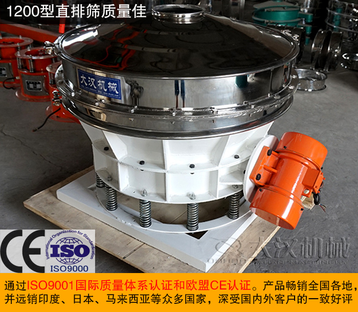 大漢1200型直排篩生產(chǎn)嚴格按照高標準執(zhí)行,該款設(shè)備通過ISO9001國際質(zhì)量體系認證和歐盟CE認證。產(chǎn)品暢銷全國各地,并遠銷印度、日本、馬來西亞等眾多國家,深受國內(nèi)外客戶的一致好評。