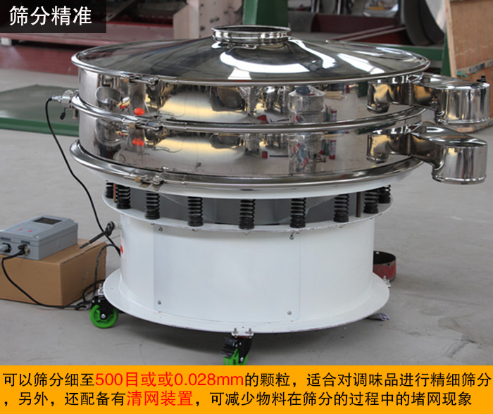 三次元振動(dòng)篩篩分物料范圍廣,可以篩分細(xì)至500目或或0.028mm的顆粒,適合對(duì)調(diào)味品進(jìn)行精細(xì)篩分,另外,還配備有清網(wǎng)裝置,可減少物料在篩分的過(guò)程中的堵網(wǎng)現(xiàn)象,極大的提高了篩機(jī)的篩分產(chǎn)量和篩分效率。