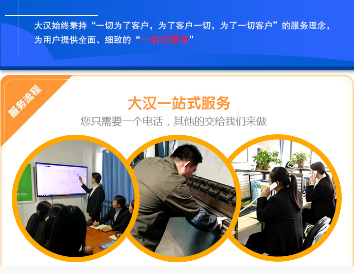 大漢始終秉持“一切為了客戶,為了客戶一切,為了一切客戶”的服務理念,為用戶提供全面、細致的“一站式服務”,專注于每一個服務細節(jié),以滿足用戶所需為己任,做值得用戶信賴的合作伙伴!