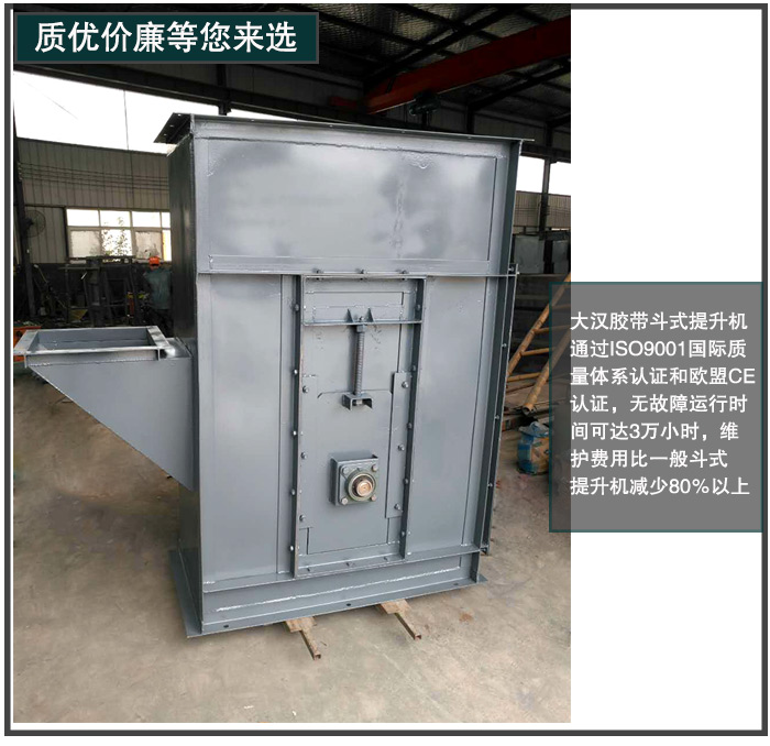 質(zhì)量高的產(chǎn)品,其使用價值就越高,一臺優(yōu)質(zhì)的膠帶斗式提示機,無論在原材料的選取還是在制作工藝上都做到精益求精,所以會耗費一定的時間成本和生產(chǎn)成本,可以減少用戶的維修成本。所以大漢在質(zhì)量上絲毫沒有松懈,生產(chǎn)嚴(yán)格按照國家標(biāo)準(zhǔn)化執(zhí)行,對產(chǎn)品質(zhì)量進(jìn)行實時監(jiān)測,在達(dá)到合格之后方可進(jìn)行下一步生產(chǎn),銷售,大漢膠帶斗式提升機質(zhì)量沒得說,通過ISO9001國際質(zhì)量體系認(rèn)證和歐盟CE認(rèn)證,提升機無故障運行時間可達(dá)3萬小時,維護(hù)費用比一般斗式提升機減少80%以上,用戶可以放心購買。