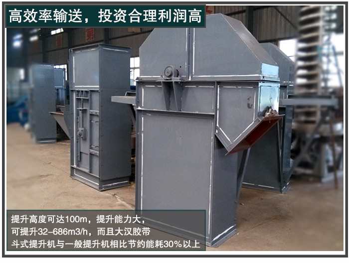 一臺設(shè)備都是用來投入生產(chǎn)的,所以效率對于衡量一臺設(shè)備的價格至關(guān)重要,因為效率高,對用戶的投入使用就越有利。大漢膠帶斗式提升機提升效率高,提升高度可達(dá)100m,提升能力大,可提升32-686m3/h,而且大漢膠帶斗式提升機與一般提升機相比節(jié)約能耗30%以上,更加能耗低。