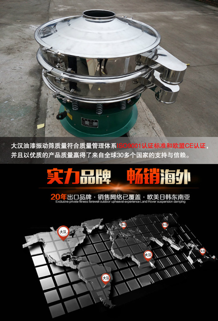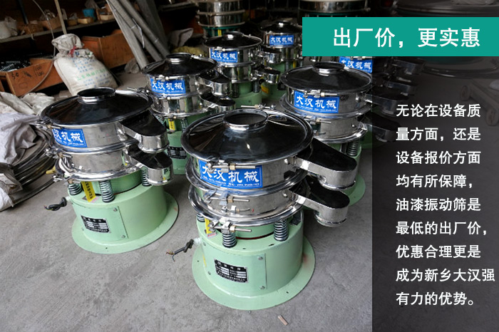 用戶都希望以較低的價格購得較高質(zhì)量的產(chǎn)品,大漢作為直銷型廠家,無論在設(shè)備質(zhì)量方面,還是設(shè)備報(bào)價方面均有所保障,油漆振動篩是低的出廠價,優(yōu)惠合理更是成為新鄉(xiāng)大漢強(qiáng)有力的優(yōu)勢。