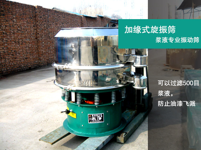 針對油漆的過濾,大漢旋振篩可以過濾500目漿液,精度高,另外,由于油漆在過濾除雜的過程中極易造成液體飛濺,所以大漢有在原有基礎(chǔ)上設(shè)計(jì)了一款新鄉(xiāng)旋振動篩—加緣式旋振篩(漿液專業(yè)振動篩),雜質(zhì)、粗料自動排出,可以連續(xù)作業(yè),篩分效率高。