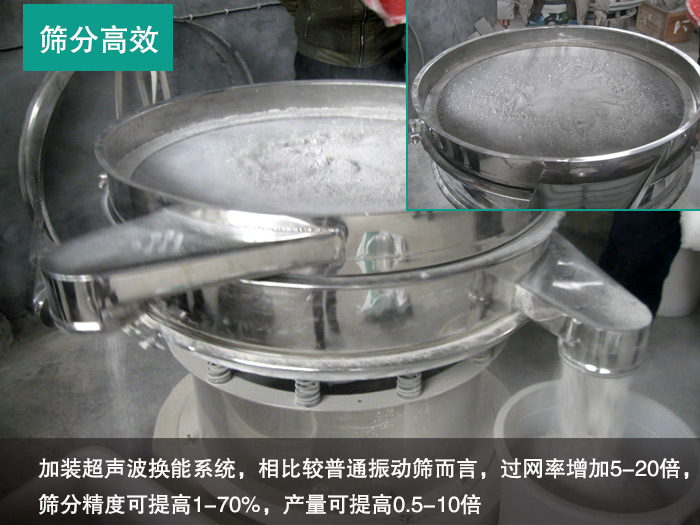 ②我們的微礦粉超聲波振動篩由于加上了超聲波篩分系統(tǒng),因此可以加快團聚物、高靜電、高精細、高密度、比重輕、吸附物料的分離,從而增加其篩分量,相比較普通振動篩而言,過網(wǎng)率增加5-20倍,篩分精度可提高1-70%,產(chǎn)量可提高0.5-10倍,適合日產(chǎn)1000噸微礦粉的超聲波振動篩。