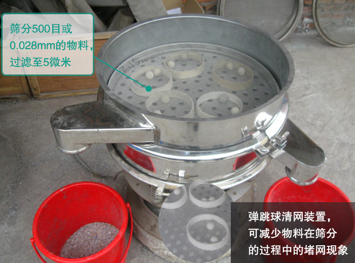 新鄉(xiāng)大漢圓形振動篩可以篩分500目或或0.028mm的物料,過濾至5微米,同時還配備有清網(wǎng)裝置,可減少物料在篩分的過程中的堵網(wǎng)現(xiàn)象,進一步提高圓形振動篩提高篩分效率。