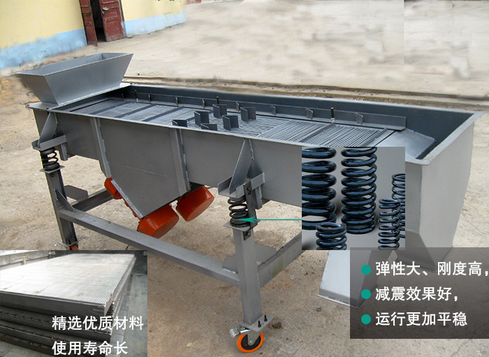 大漢廠家生產(chǎn)的直線振動篩精選優(yōu)質(zhì)材料制作而成,廠家選擇彈性大、剛度高的彈簧支撐在直線振動篩的每個角,保證減振效果明顯,直線振動篩運行平穩(wěn)。