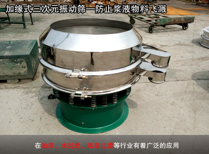 該種類型的三次元振動(dòng)篩是在普通型旋振篩的基礎(chǔ)上增大它的入料口,并通過特殊角度的設(shè)計(jì)以防止液體飛濺的過濾型篩分設(shè)備,在油漆、水過濾、紙漿過濾等行業(yè)有著廣泛的應(yīng)用。該系列旋振篩是我廠在吸收國內(nèi)外先進(jìn)技術(shù)基礎(chǔ)上,設(shè)計(jì)出的具有國內(nèi)先進(jìn)水平的特殊性、高粘度、細(xì)粒物料篩分設(shè)備,主要用于篩分細(xì)粉、微粉、以及干、濕物料等。