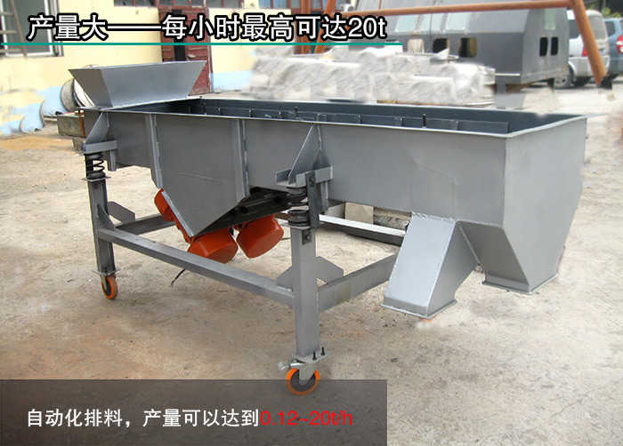 直線振動篩篩面層數(shù)高可達5層,用戶可以根據(jù)篩分產(chǎn)量的大小選擇合適層數(shù)的直線振動篩。另外,直線振動篩可以自動化排料,產(chǎn)量可以達到0.12~20t/h。