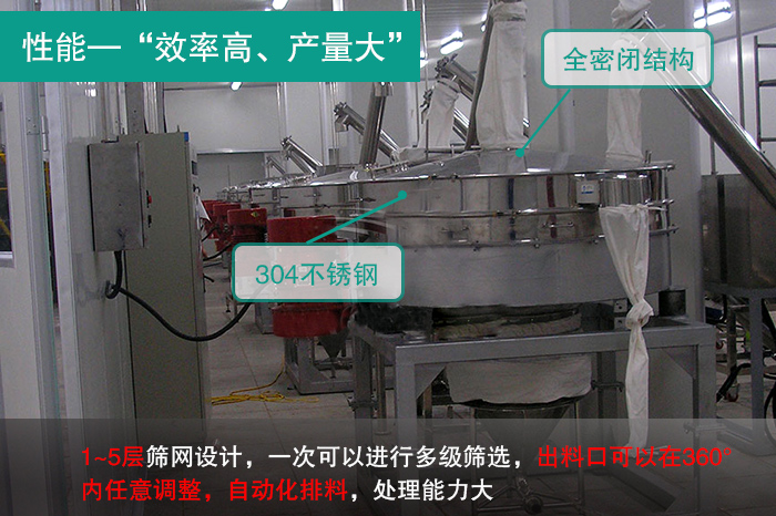 直排式振動(dòng)篩精選304不銹鋼材質(zhì),更加堅(jiān)固耐用,1~5層篩網(wǎng)設(shè)計(jì),一次可以進(jìn)行多級(jí)篩選,出料口可以在360°內(nèi)任意調(diào)整,自動(dòng)化排料,處理能力大。還采用了采用全密閉結(jié)構(gòu),可保證物料篩分過(guò)程中的篩分效率。
