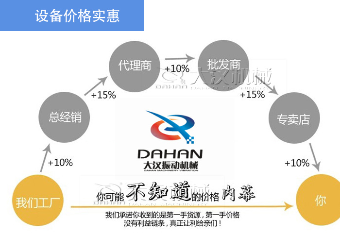 大漢機(jī)械是典型的直銷型廠家,因為做工成熟、批量生產(chǎn)、科學(xué)管理,減少成本、提升品質(zhì),提供的不銹鋼直線篩價格更實惠,購買更合理。