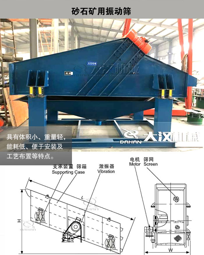 優(yōu)勢:適用于粒度在0.074—5mm,含水量小于7%,大給料粒度不大于10mm,砂石直線振動篩的大產(chǎn)量為20噸/時。