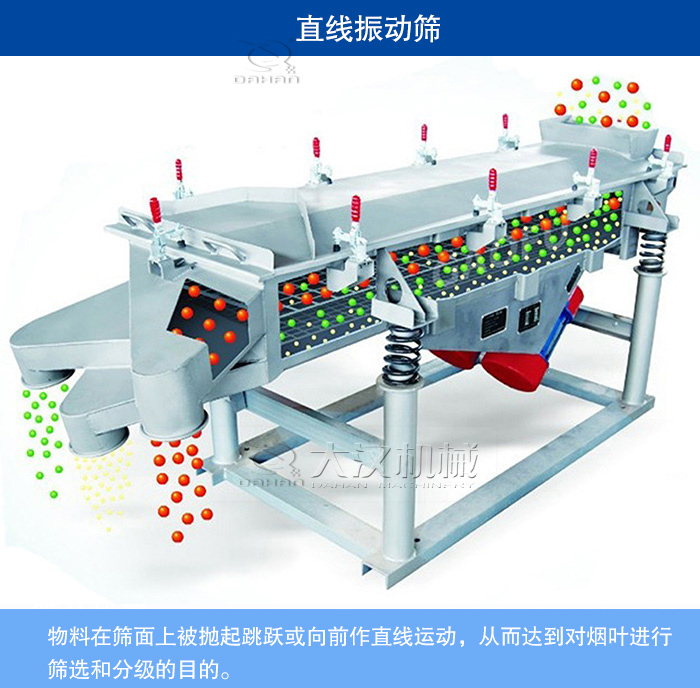 煙葉是煙草工業(yè)的原料,在煙葉生產(chǎn)工藝中,難免會(huì)混入各種各樣的雜質(zhì),這就需要使用振動(dòng)篩對(duì)其進(jìn)行除雜,同時(shí)也需要進(jìn)行初步的除梗、大小分選以滿足不同煙草制備流程需求。煙草篩分使用哪種振動(dòng)篩呢?大漢廠家為您推薦一下兩者煙葉專用振動(dòng)篩。