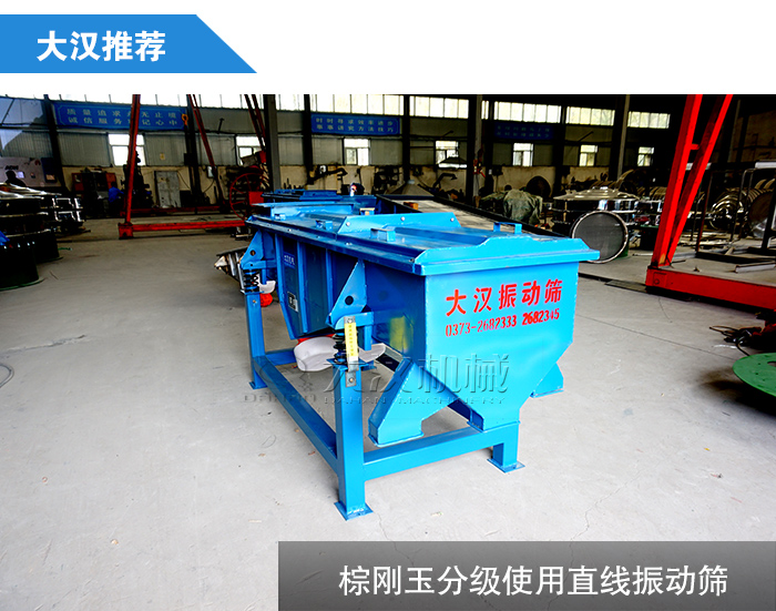 棕剛玉主要是用在耐火材料,砂輪,噴砂中,棕剛玉分級(jí)離不開振動(dòng)篩設(shè)備,那么棕剛玉分級(jí)使用哪種振動(dòng)篩呢?大漢廠家在這里建議您使用直線振動(dòng)篩,主要原因如下: