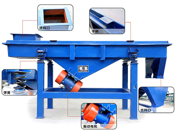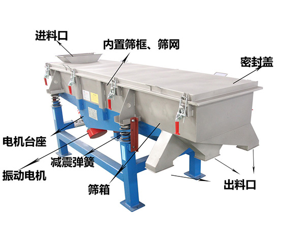 直線振動篩主要由振動電機(jī)、電機(jī)臺座、減振彈簧、篩箱、網(wǎng)架、篩網(wǎng)、支架等部件組成,它們各自都有哪些特點呢?小編來解答。