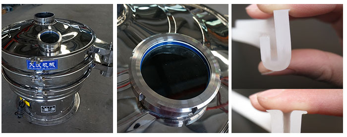 除了不銹鋼振動篩在處理中藥粉時,機體材質(zhì)為醫(yī)藥不銹鋼外,它的密封件和清網(wǎng)彈球等配件,也使用了醫(yī)藥的硅膠材質(zhì),密封性的同時,無死角地保證藥粉篩分的安全衛(wèi)生。