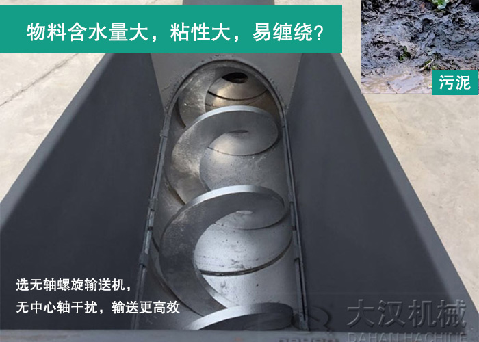 ①物料粘性大,含水量大,物料在輸送過程中就容易粘在螺旋葉片及輸送機(jī)內(nèi)壁上,隨著輸送過程的推進(jìn),黏附的物料相應(yīng)增多,輸送量會相應(yīng)減少,直接影響其輸送能力。