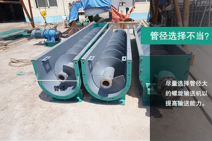 螺旋輸送機(jī)管徑的大小也同樣影響著其輸送能力。在同等條件下,螺旋管直徑較大的輸送機(jī),它的輸送量及輸送能力會比管徑小的要高。