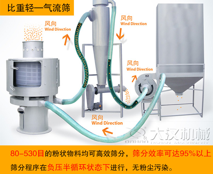 針對(duì)鋁粉比重輕這一特性,大漢還為您推薦一款鋁粉專用振動(dòng)篩—氣流篩。