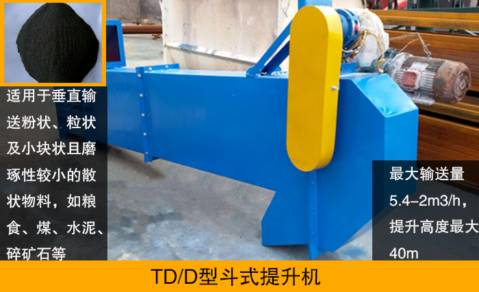 TD型斗式提升機是按照JB3926-85《垂直斗式提升機》標(biāo)準設(shè)計生產(chǎn)的,該種類斗式提升機使用功率比較低,輸送物料范圍廣。與傳統(tǒng)D型斗式提升機相比,該種類的斗式提升機輸送效率高、料斗形式多。它主要是由運行部分(料斗與牽引膠帶)、帶有傳動滾筒的上部區(qū)段,帶有拉緊滾筒的下部區(qū)段,中間機殼,驅(qū)動裝置,逆止制動裝置等組成,大輸送量5.4-2m3/h,提升高度大40m。