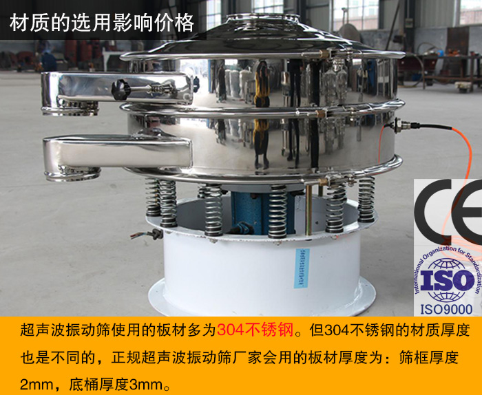 由于超聲波振動(dòng)篩針對(duì)的物料多為精細(xì)物料,所以使用的板材多為304不銹鋼。但304不銹鋼的材質(zhì)厚度也是不同的,正規(guī)超聲波振動(dòng)篩廠家會(huì)用的板材厚度為:篩框厚度2mm,底桶厚度3mm。而如果想要降低材質(zhì)成本就會(huì)有使用較薄的材質(zhì)。但這樣引起的后果就是一旦激振力強(qiáng)或使用時(shí)間較長,篩框容易出現(xiàn)斷裂等損壞現(xiàn)象,嚴(yán)重影響設(shè)備使用壽命和生產(chǎn)進(jìn)度。