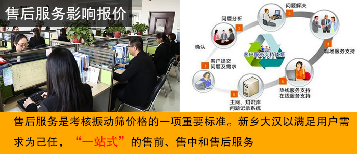 售后服務(wù)是考核振動篩價格的一項(xiàng)重要標(biāo)準(zhǔn)。但話說回來售后服務(wù)也只有合作了才知道。但我們在購買前期可以通過視頻、圖片、實(shí)地考察等形式來判斷該企業(yè)是否具有生產(chǎn)能力及售后服務(wù),新鄉(xiāng)大漢以滿足用戶需求為己任,“一站式”的售前、售中和售后服務(wù),不斷對用戶體驗(yàn)進(jìn)行改善和提升,以優(yōu)質(zhì)的品質(zhì)和周全的服務(wù)贏得了國內(nèi)外用戶的一致好評,現(xiàn)有用戶已遍布全球30多個國家,設(shè)備保修期為1年。