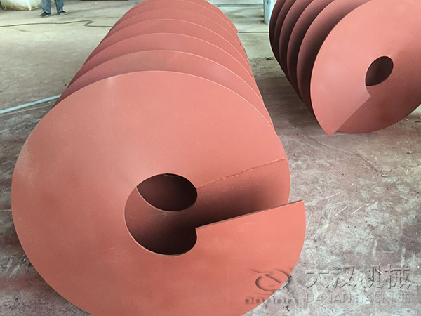 無軸螺旋輸送機(jī)又叫螺旋給料機(jī)。無軸螺旋輸送機(jī)在輸送原理上與一般螺旋輸送機(jī)基本相同:即如同一根旋轉(zhuǎn)的螺旋軸,帶動(dòng)一個(gè)螺母沿其軸向移動(dòng)一樣,無軸螺旋輸送機(jī)螺旋體相當(dāng)于螺旋軸,物料相當(dāng)于螺旋輸送機(jī)螺母,當(dāng)螺旋體連續(xù)旋轉(zhuǎn)時(shí)則物料也連續(xù)輸送。無軸螺旋輸送機(jī)螺旋體為較厚的帶狀葉片,通過無軸螺旋輸送機(jī)驅(qū)動(dòng)端驅(qū)動(dòng),中間無軸,螺旋體與機(jī)殼內(nèi)壁底部襯板接觸(滑動(dòng))。